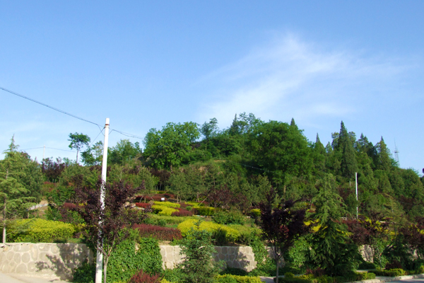 天台山位于今县治西端。东有童山、东台诸峰,如鹑鸪来翔;南有青莲山,似莲花盛开,石臼山一峰高峻;西有凤台、屏山,折叠如屏;北有碧城,山色青翠,萦绕如城。又有北马坊、杜水、清水、麟溪、澄水五水交汇,中间形成空旷平郊,天台突兀川中,一峰独秀,乃隋、唐离宫之旧墟。宫城内以天台山为中心,四向辐射。山顶有九龙殿,殿前两冢,营阙相对,类似长安大明宫含元殿之貌;沿山顶东侧而下,分岩疏阙,修筑长廊与山坳大殿相通。沿山朱楼翠阁,劈石依山,参差而营,婉转相属。山东有御容殿,今人呼为梳妆台,为隋、唐贮妃处。在御容殿与天台山大殿之间,架有空中走廊,形似长虹,宫中后妃嫔女,可从御容殿直通天台山顶九龙殿,如仙女临空,飘然而下;再东,则为随从文武官署行辕。山南丹霄楼,紫云殿遥遥相对,前即为宫城之南门—永光门。山有咸亨殿,并有亭台栉比的御花园;在屏山与凤山之间,杜、北诸水汇合,筑有小湖,名曰西海口,乃宫中荡舟游乐之处。杜水之南,清水之西,宫外禁苑之三角地带,有一高台,今人呼为点将台。台上楼阁相依,台下长廊直通杜水南岸后,跨水架楹,与宫城相连,此乃宫外宴乐之处。因太宗半生戎马,贞观初年,在长安改旧俗,遇有节假日,则撤嫔妃歌舞,以将士比武而代之,来九成宫则依然以射箭比武作为游宴之乐,故将宴乐之楼呼为“点将台”。天台山北,碧城山南麓有排云殿,主殿庄严肃穆,再后,则为宫城北门—玄武门。沿天台山北上,有宿卫将帅之行辕,山之绝顶为僚城北门及箭楼。至此,我们可以了解九成宫宫殿概貌,前有九龙,后有排云,左有御容,右有咸亨,“高阁周建,长廊四起,栋宇胶葛,台榭参差”,成为当时离宫之冠。宫宇毁于晚唐。明以后,修佛刹于天台山,名曰天台寺,亦名福昌院,于旧址东阙营建戏楼,西阙保存尚好,高约二丈,结小阁以祀观音。今寺已圮,其自然景观仍属动人。山顶九龙殿前两棵古柏,仍然生机勃勃,一侏挺拔而上,主杆右侧有一大侧枝,似人以手招之,颇似泰山迎客松,惜乎近年被人砍去侧枝,一株双干倾斜,如鸟翔状。山间石崖上有群柏攀沿,其枝下垂,其叶上翘,形成奇质,人称卷柏。山西屏山,有水自石崖中出,清流一线,喷滴而下,状如碎玉。故称“屏山喷玉”,谷呼“滴水崖”,山东九成宫镇街南,有发掘出我国最早的一口水井—唐井,游人争相观瞻。近人良丞为天台古寺著联称“纵观历史,贞观之治称盛:横览九州,天台山水最佳”。的确在天高气晴之佳日,登临天台山顶,四顾群峰来朝,派水分流,麟游新城楼屋毗连,街巷纵横,一览无遗,忆古思今,给人以壮志凌云,宏伟壮阔之感。